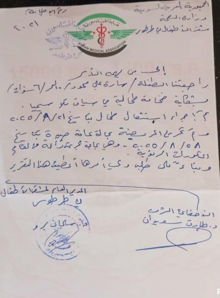 اليوم معنا 4 حالات بحاجة ماسة للمساعدة :_خضر علوش لديه 3 أطفال من ذوي الاحتياجات الخاصة توفى أحدهم من أسبوعين بحاجة أدوية وحفاضات بقيمة 1,500,000 ل.س _ زياد أحمد والده مريض ضغط وسكري ويعاني من القدم السكرية والدته مصابة بداء باركنسون بحاجة أدوية وضمادات بقيمة 500,000 ل.س _ رويدة يونس قتل هيئة الجولاني ابنها غدير محمد 15سنة هو وابن عمه _ رضوان بيروتي مريض قصور كلوي مزمن يلزمه غسيل للكلية مرتين اسبوعياً وبحاجة أدوية بقيمة 1,000,000 ل.س